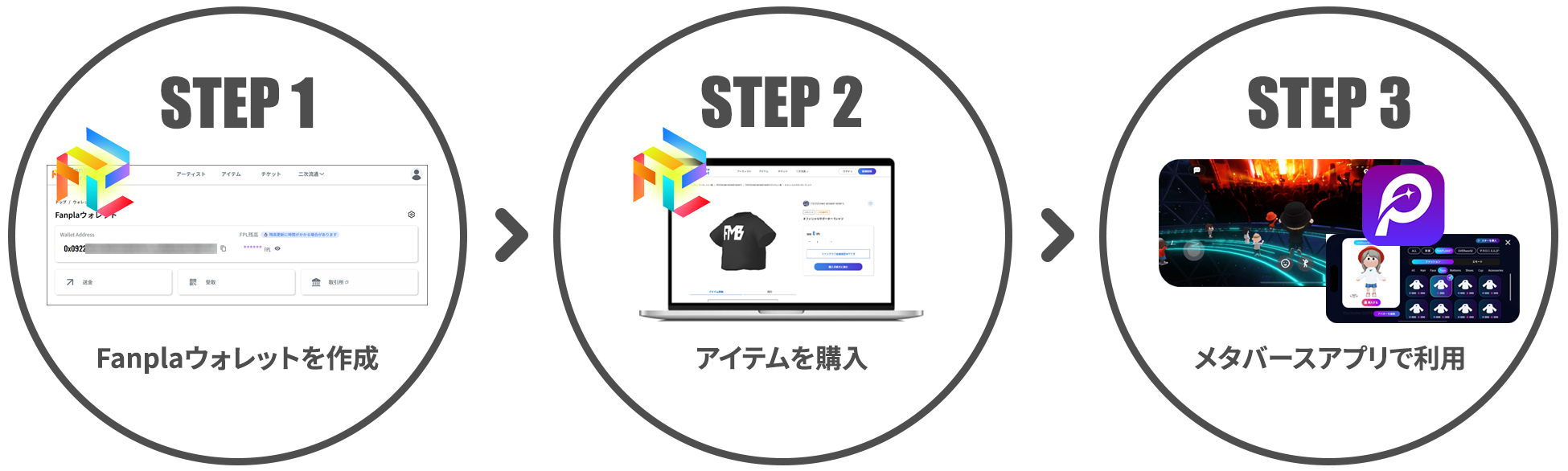 アイテムは「Fanpla Market」より暗号資産"Fanpla(FPL)"を利用して購入いただきます。